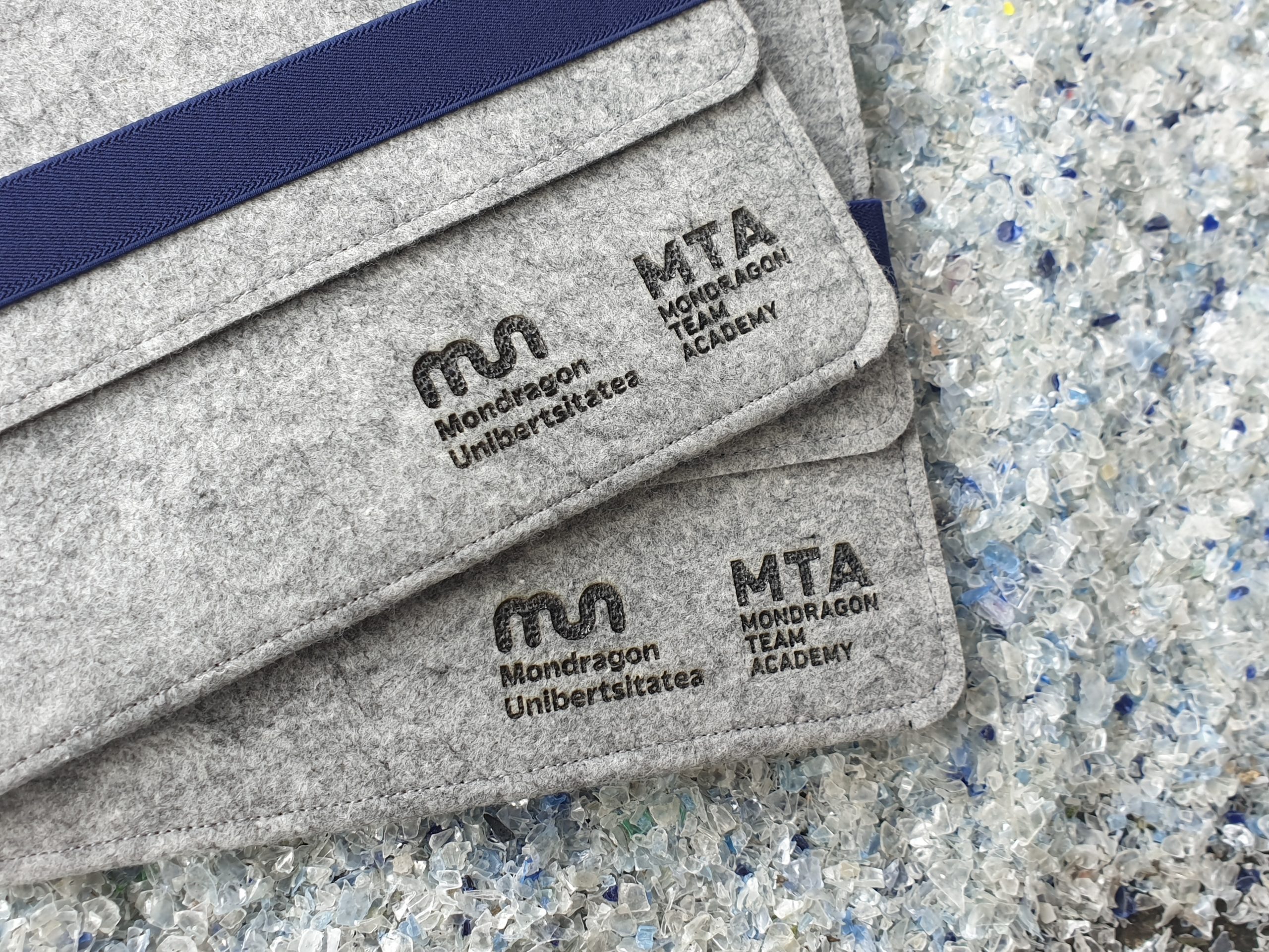 Esta funda de ordenador HAZI fue diseñada para Mondragon unibertsitatea, apostando por materiales reciclados y un diseño funcional y cuidado. Incorpora una cinta de color azul que aporta un detalle distintivo y práctico, así como el logo de la universidad ubicado en la parte inferior derecha de la funda, reforzando su identidad institucional. Un accesorio pensado para el uso diario que combina protección, sostenibilidad y diseño responsable, alineado con los valores de innovación y compromiso con el entorno.
