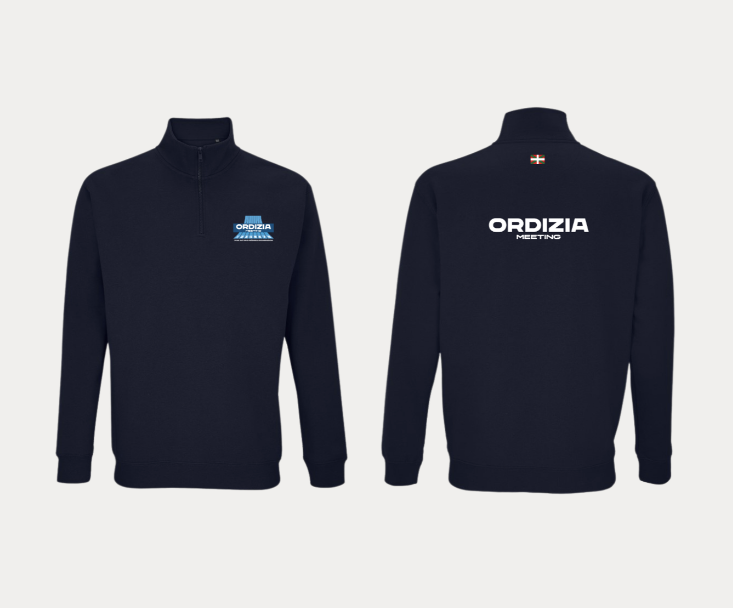 Para Ordizia Meeting, un evento de atletismo, desarrollamos el diseño de sudaderas personalizadas pensadas para el uso durante el evento y más allá de él. Se trata de una sudadera azul marino con cremallera, diseñada para ofrecer comodidad y versatilidad. El diseño incorpora el logotipo de Ordizia Meeting en la parte delantera y el nombre del evento en la espalda, reforzando su identidad visual de forma clara y reconocible. El resultado es una prenda funcional y duradera, concebida como recuerdo del evento y como una pieza de uso diario que prolonga su visibilidad en el tiempo.