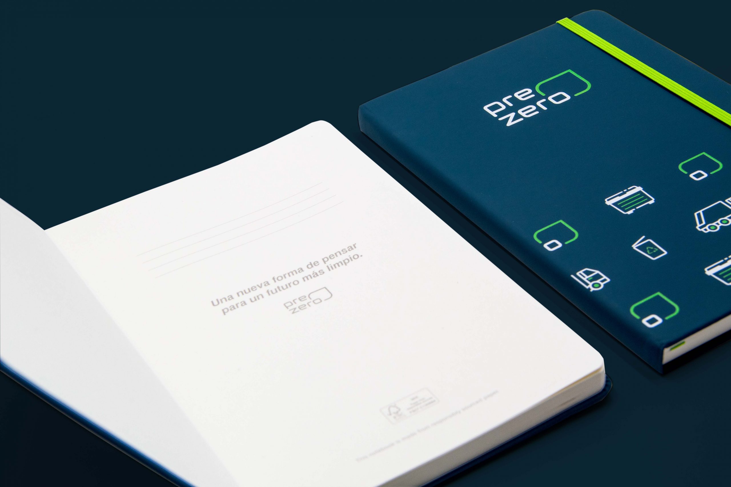Para el proyecto de cuadernos de Prezero desarrollamos un diseño pensado como un soporte práctico y representativo de la marca. La propuesta parte de la adaptación de la identidad visual de Prezero a un formato de uso diario, cuidando cada detalle: desde los materiales seleccionados hasta los acabados y la composición gráfica. El resultado es un cuaderno equilibrado, funcional y estéticamente coherente, diseñado para acompañar a los usuarios en su día a día mientras refuerza de manera natural la presencia y el reconocimiento de la marca.