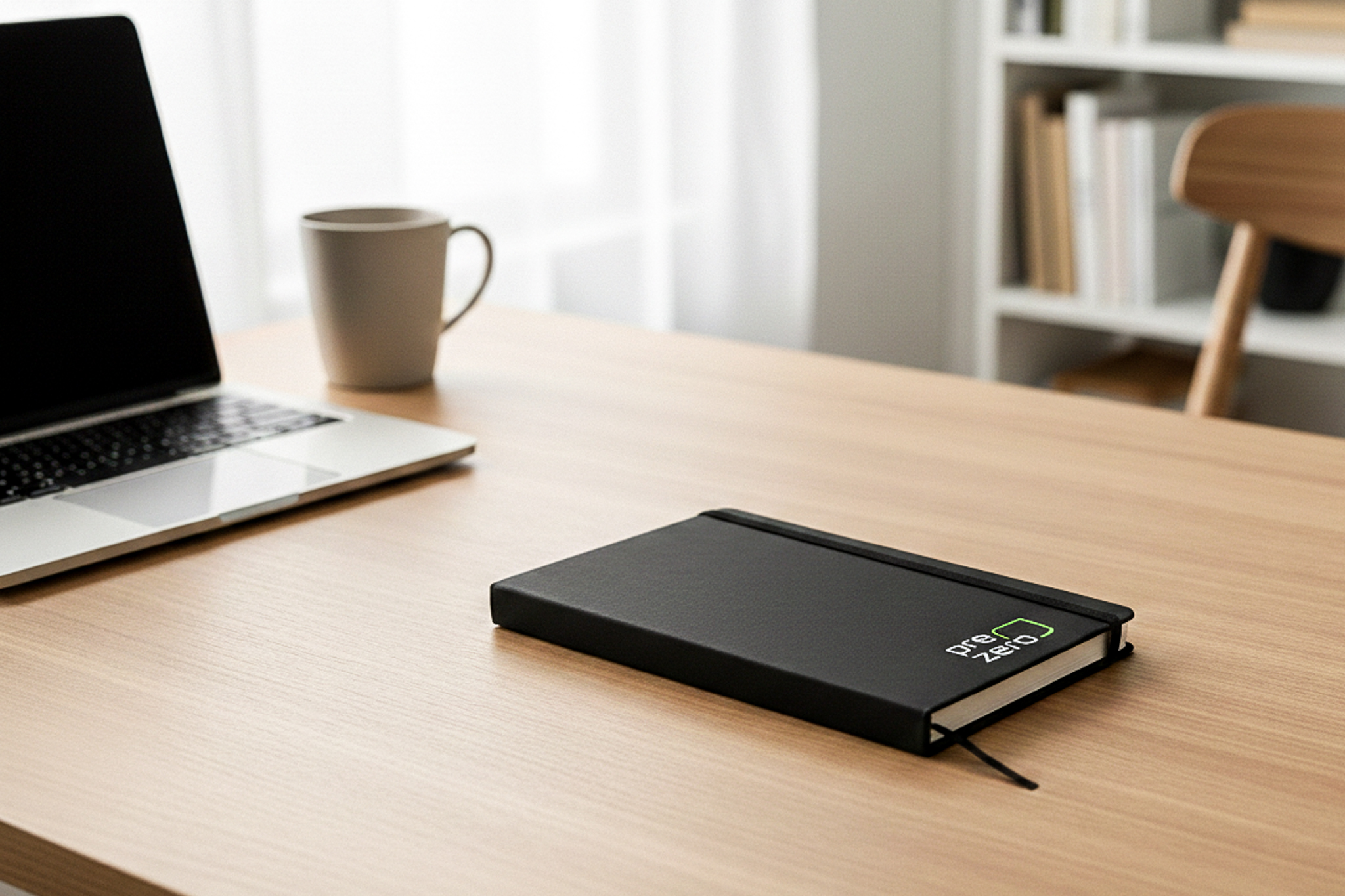 Para Prezero desarrollamos el diseño de un cuaderno negro con una estética limpia y elegante. El diseño incorpora el logotipo de la empresa en un tamaño reducido, manteniendo un enfoque minimalista y corporativo. El resultado es un cuaderno funcional y de uso diario que refuerza la identidad visual de Prezero de manera sutil y coherente, adaptándose a distintos contextos profesionales.