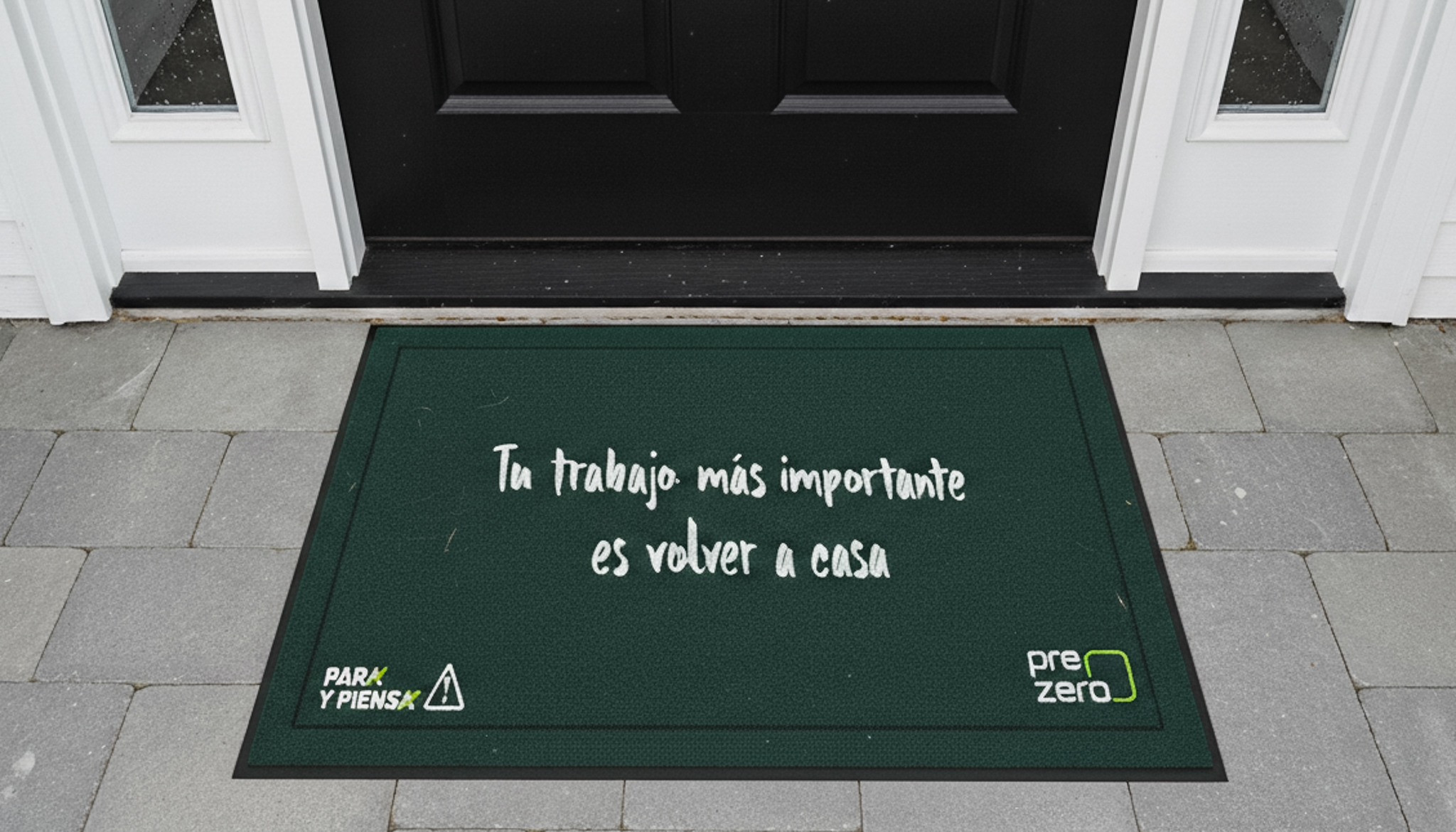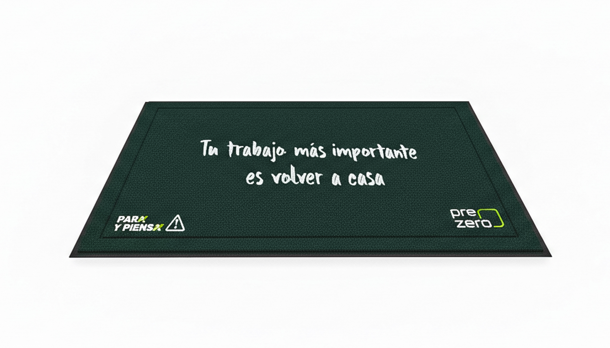 Para Prezero desarrollamos el diseño de un felpudo corporativo fabricado con materiales reciclados, alineado con los valores de sostenibilidad y responsabilidad de la marca. El diseño incorpora la frase “tu trabajo más importante es volver a casa”, un mensaje de carácter reflexivo que pone en valor la seguridad y el bienestar de las personas. El resultado es un producto funcional y resistente que traslada los valores de Prezero a un objeto cotidiano, reforzando su identidad de marca de una forma cercana y consciente desde el primer contacto.